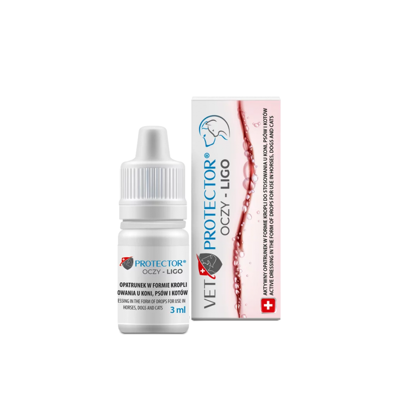 VET PROTECTOR® OCZY – LIGO zawiera tylko jeden składnik, który posiada niskie napięcie powierzchniowe, dzięki temu krople mogą przejąć funkcję warstwy lipidowej filmu łzowego.
