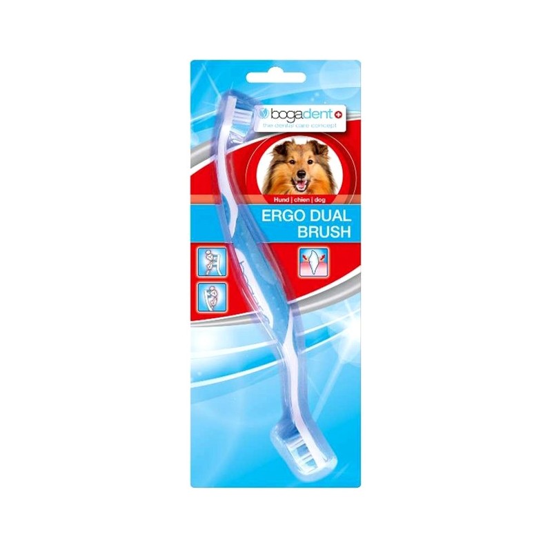 Bogadent - Ergo Dual Brush Dog to szczotka zaprojektowana z myślą o pielęgnacji jamy ustnej u psów. Charakteryzuje się dwustronnym działaniem, oferując dwie różne powierzchnie do czyszczenia zębów i dziąseł psa.