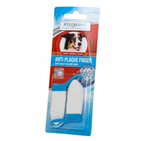 Nakładka na palec Bogadent Anti-plaque finger to antybakteryjne nakładki z jonami srebra, które skutecznie usuwają płytkę nazębną. Wielokrotnego użytku, zmywalne i łatwe w użyciu - idealne dla dorosłych psów, aby zapobiegać kamieniowi nazębnemu i dbać o zdrowie jamy ustnej.