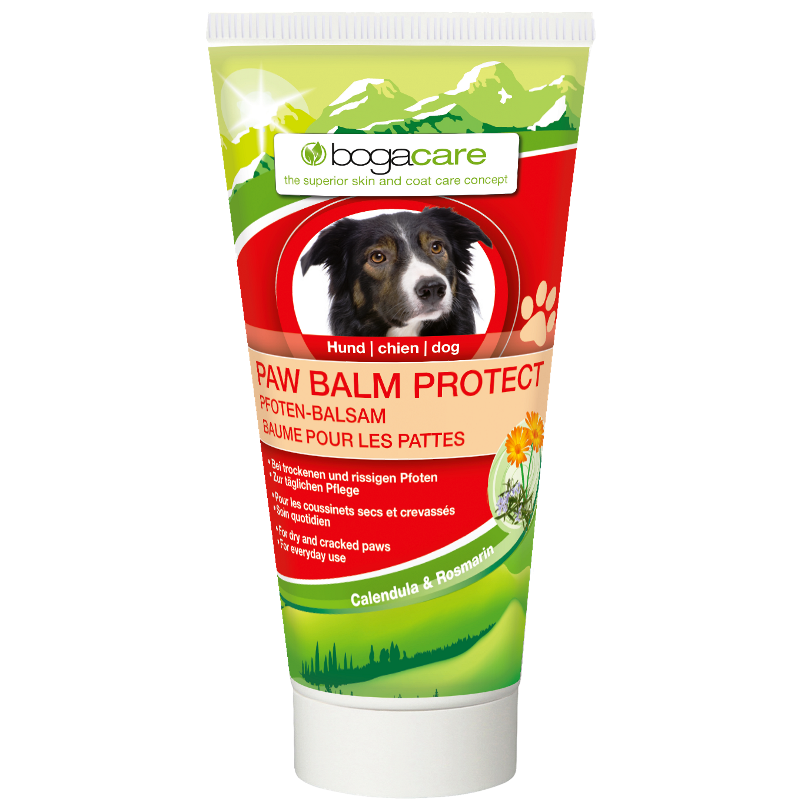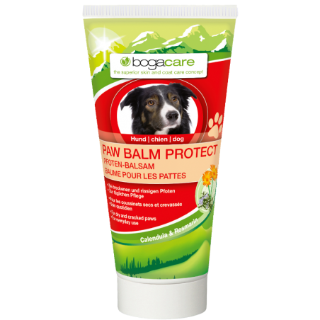 Bogacare® PAW BALM PROTECT to balsam, który dzięki specjalnie opracowanej, szybko wchłaniającej się formule z nagietkiem i rozmarynem działa kojąco i łagodząco, jednocześnie chroniąc psie łapy. Dodatkowo nasz bogacare® PAW BALM PROTECT nie zawiera uszczelniającego wosku pszczelego ani olejów mineralnych, dzięki czemu opuszki łap oraz przestrzenie między nimi pozostają oddychające. Produkt wolny jest od sztucznych konserwantów, substancji zapachowych i barwników.
