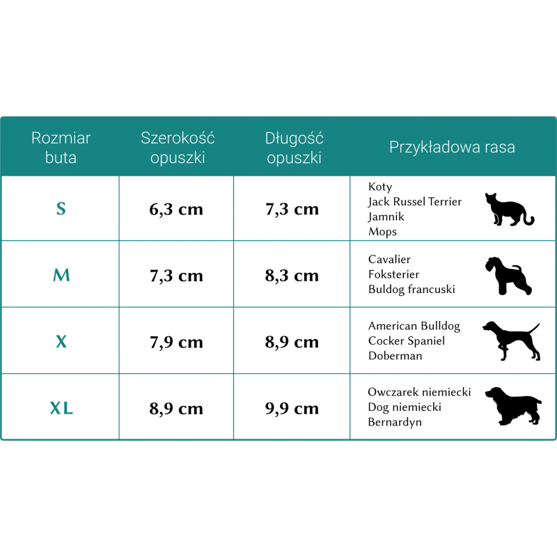 Przed założeniem buta należy upewnić się, że rana lub opatrunek są czyste i odpowiednio zabezpieczone. Następnie rozpiąć rzep, wsunąć łapę do środka i zapiąć pasek tak, aby but dobrze przylegał, ale nie uciskał kończyny. Po założeniu warto sprawdzić, czy zwierzę porusza się swobodnie i czy but nie zsuwa się w trakcie chodzenia.