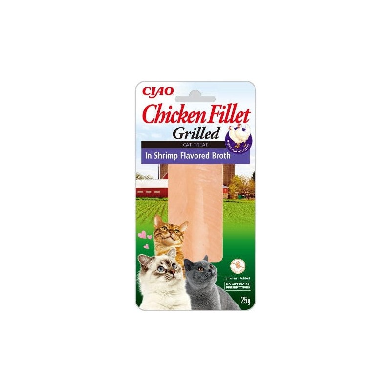 Inaba Ciao delikatnie grillowany filet z kurczaka w bulionie z przegrzebków to ręcznie cięte i wyselekcjonowane kawałki najlepszej jakości piersi z kurczaka z wolnego wybiegu w soczystym bulionie z przegrzebków. Filety są bezzbożowe, bez konserwantów oraz sztucznych barwników i charakteryzują się wysoką wilgotnością.