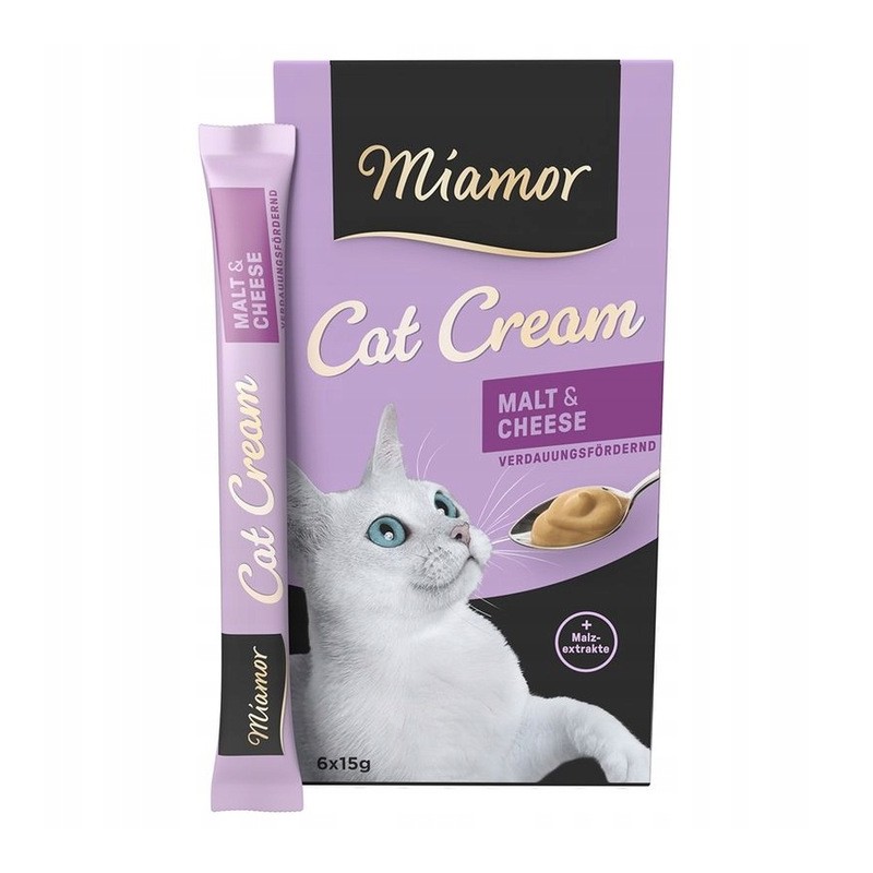 Pyszny krem jako przekąska rozpieszczająca i wspomagająca trawienie. Ekstrakty słodowe pomagają w naturalny sposób wydalać kule włosowe, które są połykane podczas czyszczenia się przez kota. Z pysznym serem dla większej różnorodności.