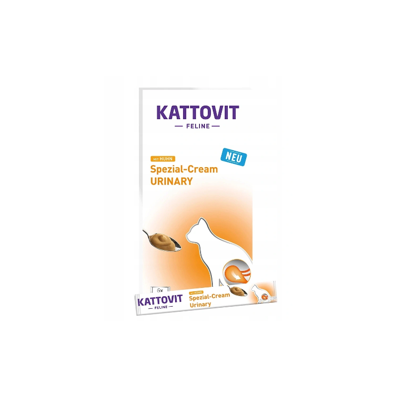 Kattovit Special Cream Urinary to sos dla kota z problemami układu moczowego. Jest zalecany specjalnie dla wszystkich kotów wrażliwych żywieniowo. Ten sosik dla kota wspomagający układ moczowy zachęca kota do picia, a dzięki doskonałemu smakowi stanowi doskonałą przekąskę pomiędzy posiłkami. Koty z chorobą dolnych dróg moczowych (FLUTD) często zmagają się z kamieniami struwitowymi. Aby zapobiec tworzeniu się nowych kamieni moczowych, pomocna może okazać się dostosowana dieta. Kattovit Feline Urinary został opracowany, aby zredukować uciążliwe nawroty kamieni struwitowych u kotów.
