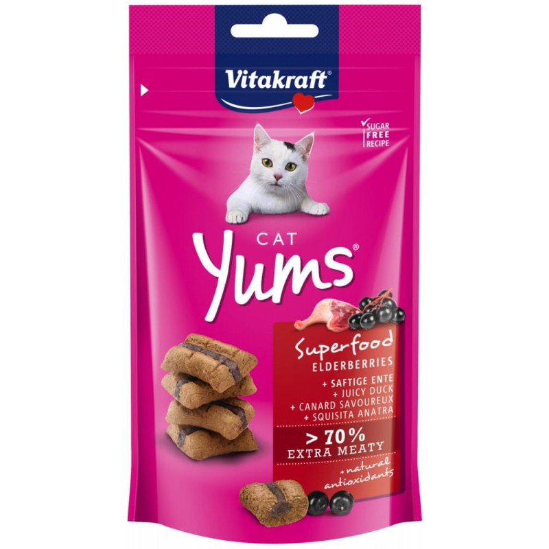 Vitakraft Yums to mięsny przysmak dla kota wyprodukowany przy użyciu unikalnego procesu z wykorzystaniem najlepszych składników i według starannej receptury bez dodatku cukru. Każdy pasztecik jest wypełniony przepysznym nadzieniem i delikatnie przypiekany.