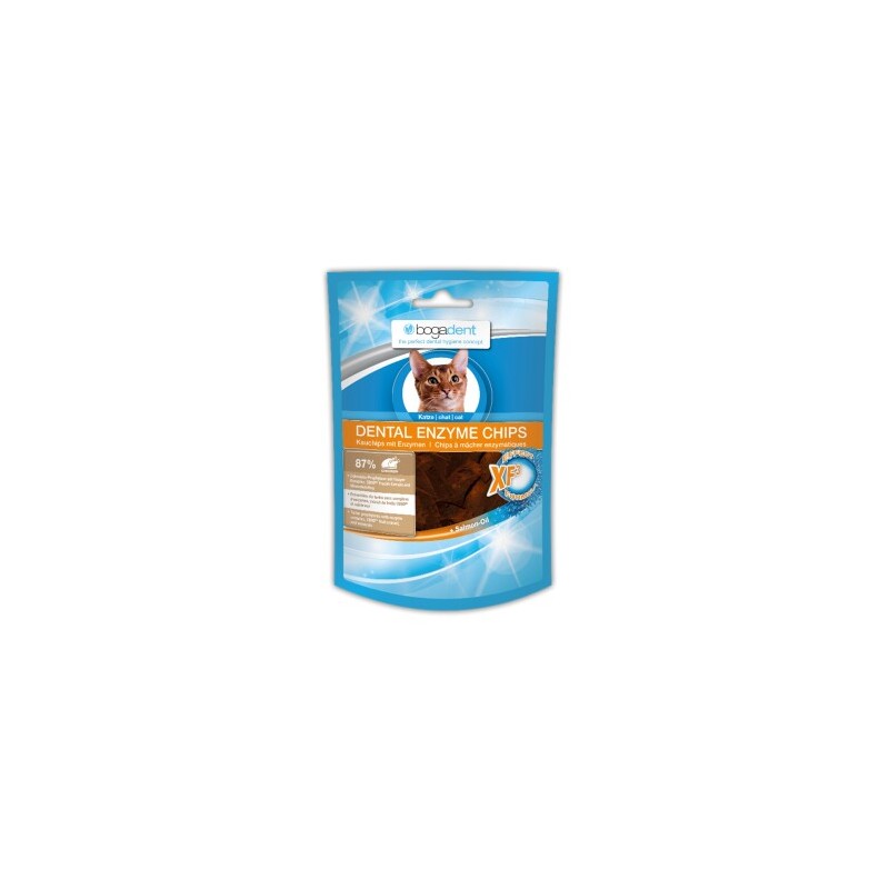 Bogadent Dental Enzyme Chips to pyszne chipsy dentystyczne wykonane w 92% z ryb i kurczaka. Funkcjonalnie uzupełnione innowacyjną formułą XF3 -Efekt, wykonaną z naturalnych enzymów ze skoncentrowanej serwatki i dwoma dodatkowymi aktywnymi składnikami (ekstrakt z owoców CB90MX, minerały), chipsy łączą codzienną opiekę stomatologiczną z nagrodą. Specjalna konsystencja smakowitych Dental Enzyme Chips powoduje również czyszczenie zębów podczas żucia.