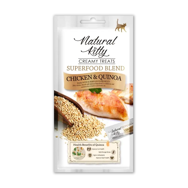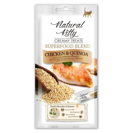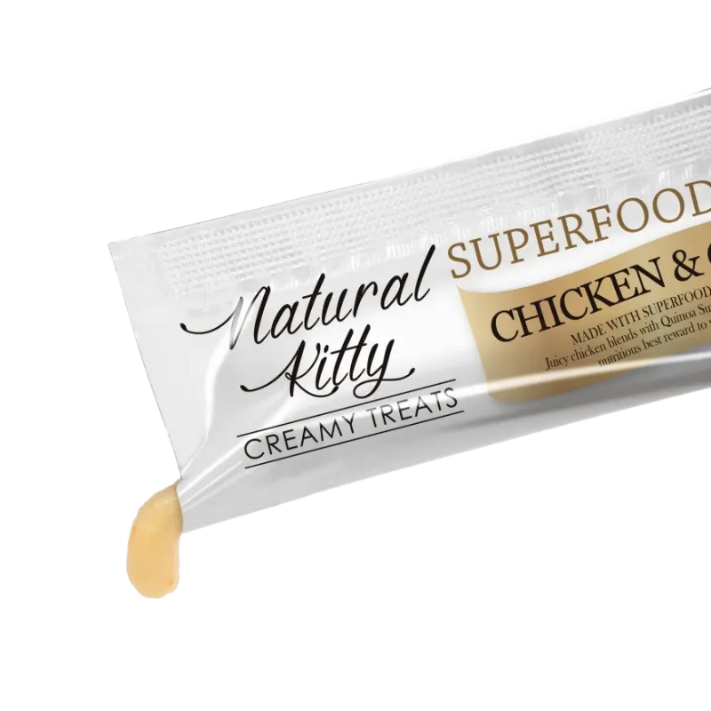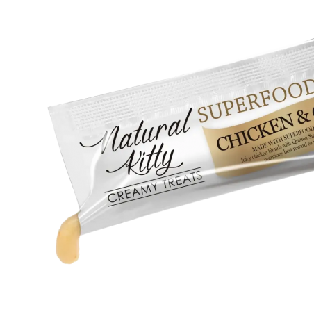 Przysmak Natural Kitty Creamy Treats to idealna przekąska dla waszego kota. Dodatkowo wspiera układ immunologiczny i poprawia stan skóry i sierści. Ta zdrowa przekąska ma mnóstwo witamin, minerałów i antyoksydantów.