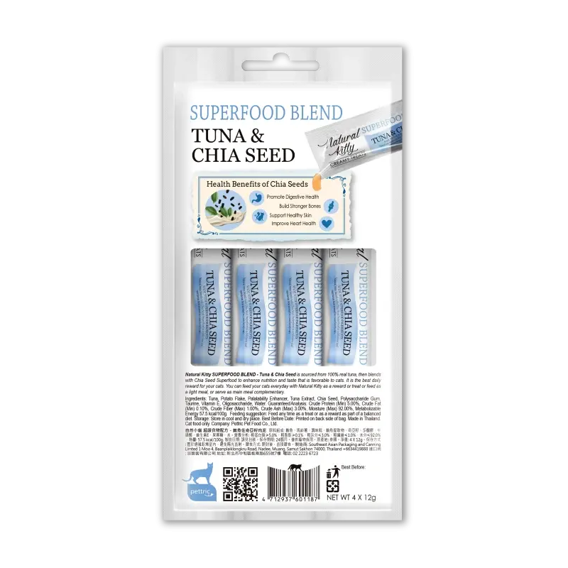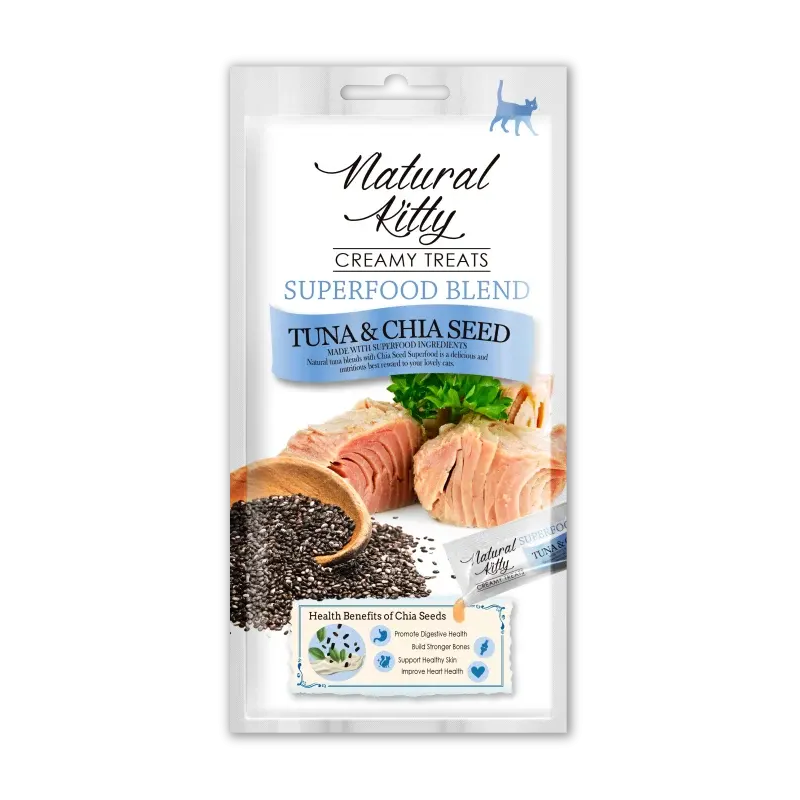 Natural Kitty Superfood Creamy 4x12g Kremowy Przysmak Sosik dla kota Tuńczyk z nasionami Chia