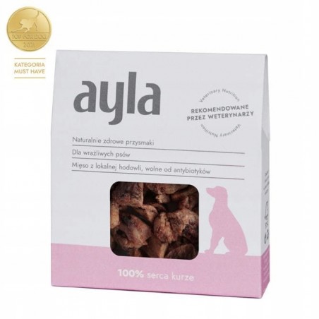 Przysmaki AYLA są monobiałkowe, nie zawierają żadnych sztucznych dodatków, konserwantów czy zbóż i innych wypełniaczy. Polecane są zarówno dla psów dorosłych jak i szczeniąt.
