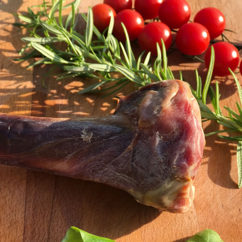 Prosciutto Bone to suszona kość z szynki parmeńskiej stworzona z myślą o zachowaniu największej jakości aromatów. Nie jest wędzona tylko suszona, co pozwala zachować jej wszystkie właściwości i walory smakowe. Kość nadaje się do gryzienia przez dłuższy czas np. podczas nieobecności właściciela zapewniając psu ciekawe zajęcie oraz uzupełnienie diety o naturalne składniki odżywcze.