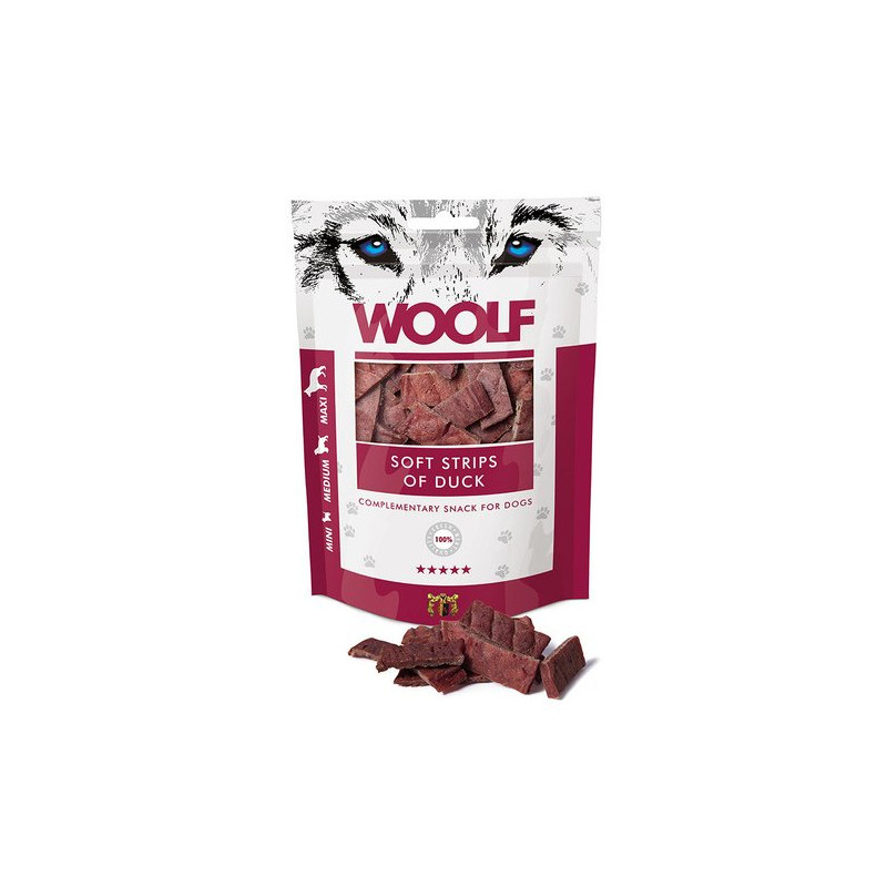 Woolf Snack Duck Strips to smakowity przysmak dla twojego ulubieńca! Wraz z nim otrzyma potrzebne do dobrego funkcjonowania białko. Przysmak jest naturalny i lekkostrawny, nie zawiera chemicznych dodatków. Świetnie sprawdzi się jako przekąska urozmaicająca codzienną dietę twojego psiaka.