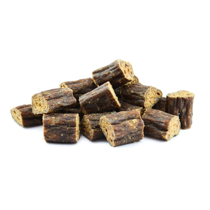 Przysmaki w postaci miękkich kąsków z wołowiny dla psów.
