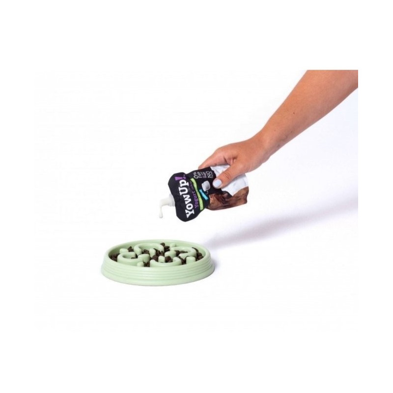 YOW UP! to jogurt naturalny z recepturą opracowaną dla psów, o udowodnionej funkcjonalności i w formie łatwej w użyciu. To również suplement diety, który zawiera PREBIOTYKI pochodzenia roślinnego, pozyskiwane z buraków i poświadczone badaniami weterynaryjnymi, które potwierdzają korzyści, jakie przynoszą dla psów. Tubka to bardzo praktyczne opakowanie, w 100% nadające się do recyklingu i elastyczne. Dzięki temu praktycznemu formatowi, jogurt możesz zabrać na koniec świata w plecaku i podać psu wszędzie.