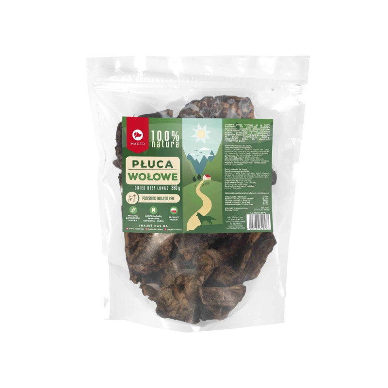 Suszone płuca firmy Maced to bardzo mocno aromatyczne przysmaki, którym nie oprze się żaden pies. Idealnie nadają się jako przekąska do gryzienia i żucia, jak również jako super nagroda podczas szkolenia. Sprawdzą się również podczas wszelkich zabaw węchowych.
