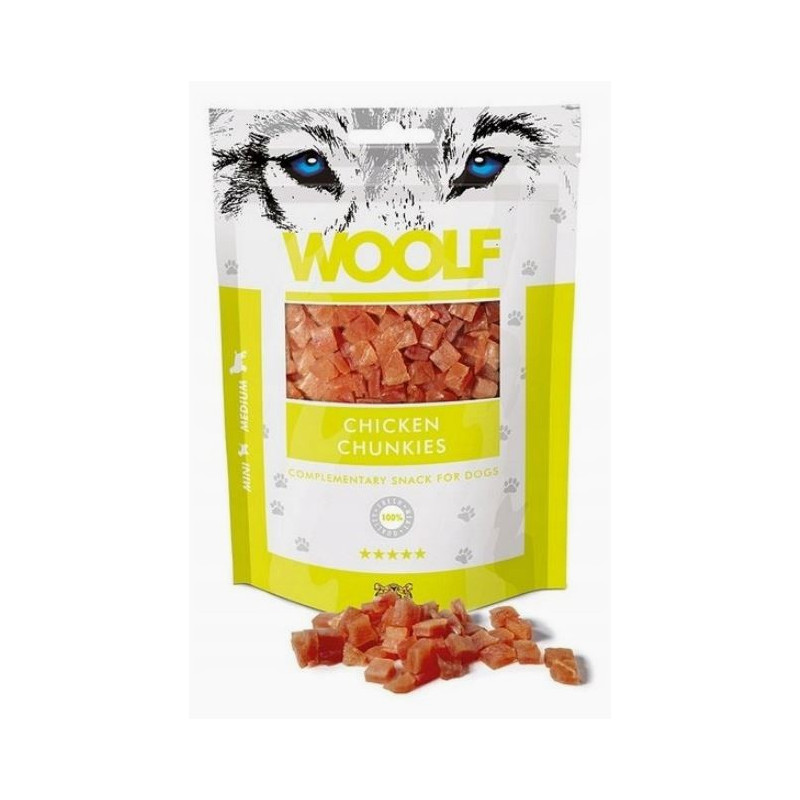 Brit Woolf Snack Chicken Chunkies to smakowity przysmak dla twojego ulubieńca! Wraz z nim otrzyma potrzebne do dobrego funkcjonowania białko. Przysmak jest naturalny i lekkostrawny, nie zawiera chemicznych dodatków. Świetnie sprawdzi się jako przekąska urozmaicająca codzienną dietę twojego psiaka.