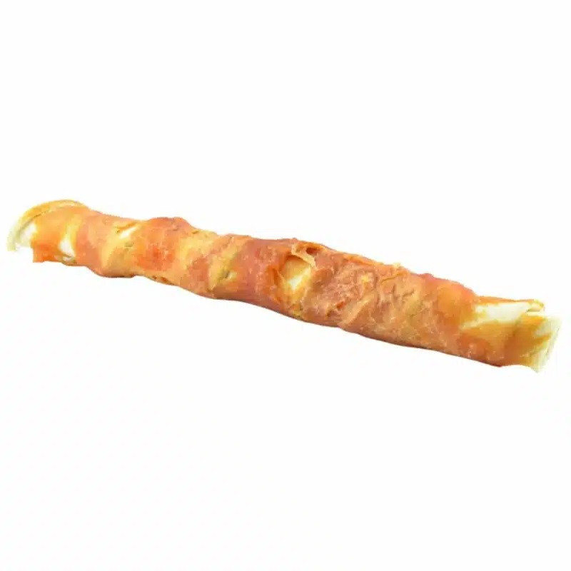 Pałka Owinięta Mięsem z Kurczaka 25cm zaspokaja naturalną potrzebę gryzienia oraz żucia. Dodatkowo pomaga w zachowaniu czystości jamy ustnej. Dla dużych i średnich psów.