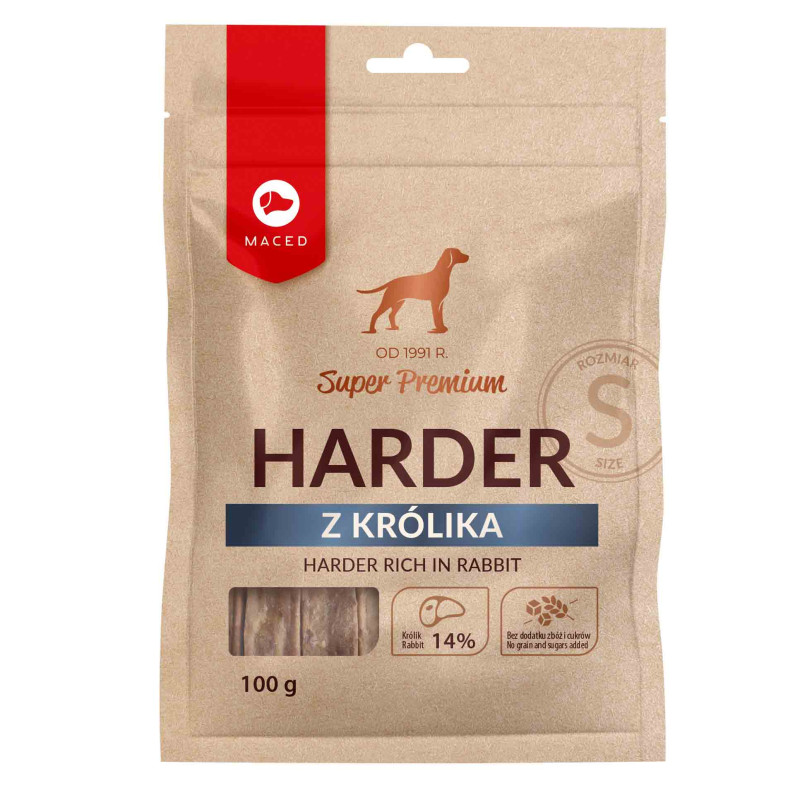 Harder wołowy firmy Maced to średnio twardy, mięsny gryzak dla psa z wysoką zawartością kolagenu (31,7%). Naturalne gryzaki stanowią doskonałą przekąska i wsparcie higieny jamy ustnej Twojego pupila. Do ich produkcji nie używa się wypełniaczy, sztucznych środków aromatyzujących, barwników ani konserwantów.