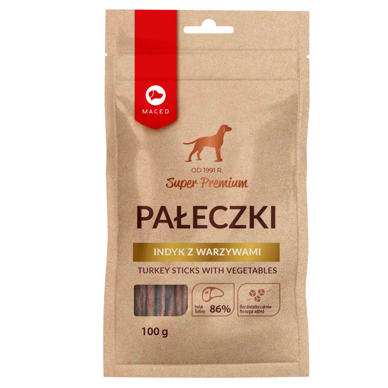Pałeczki wołowe marki Maced to idealny, naturalny przysmak dla psów, który łączy doskonały smak z korzyściami zdrowotnymi. Wykonane z wysokiej jakości mięsa indyczego, są świetnym źródłem białka, zapewniając Twojemu pupilowi zdrową i smaczną nagrodę. Indyk jest łatwo przyswajalny oraz lekkostrawny, charakteryzuje się niską zawartością tłuszczu przy dużej zawartości białka. Przysmak łatwo się dzieli na mniejsze kawałki, dzięki czemu idealnie sprawdzi się jako nagroda podczas treningu.