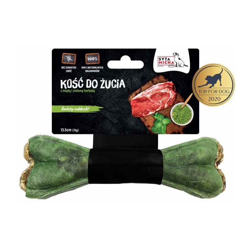 Rozmiar kości (13,5 cm) jest uniwersalny, dzięki temu pies każdego gabarytu będzie mógł czerpać radość z gryzienia funkcyjnych kości od Sytej Michy.