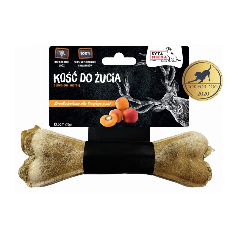 Rozmiar kości (13,5 cm) jest uniwersalny, dzięki temu pies każdego gabarytu będzie mógł czerpać radość z gryzienia funkcyjnych kości od Sytej Michy.