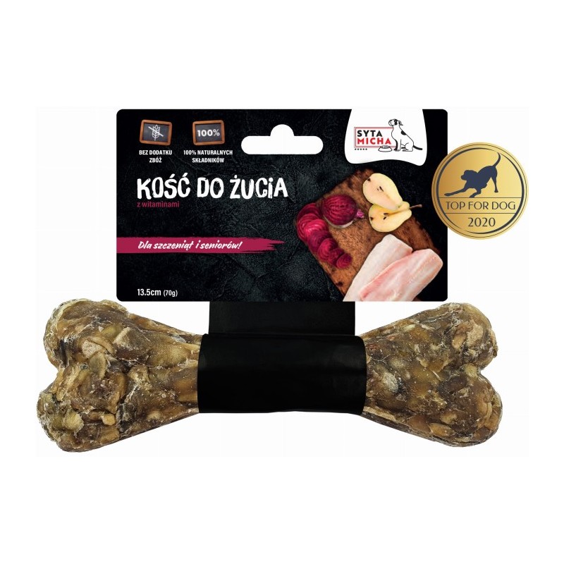 Kości z funkcyjnym nadzieniem to polski gryzak, powstały jedynie produktów naturalnego pochodzenia. Jego wartościowy skład pozwala na utrzymanie pełni zdrowia pupila oraz dostarczenie do jego organizmu wszystkich niezbędnych składników odżywczych.