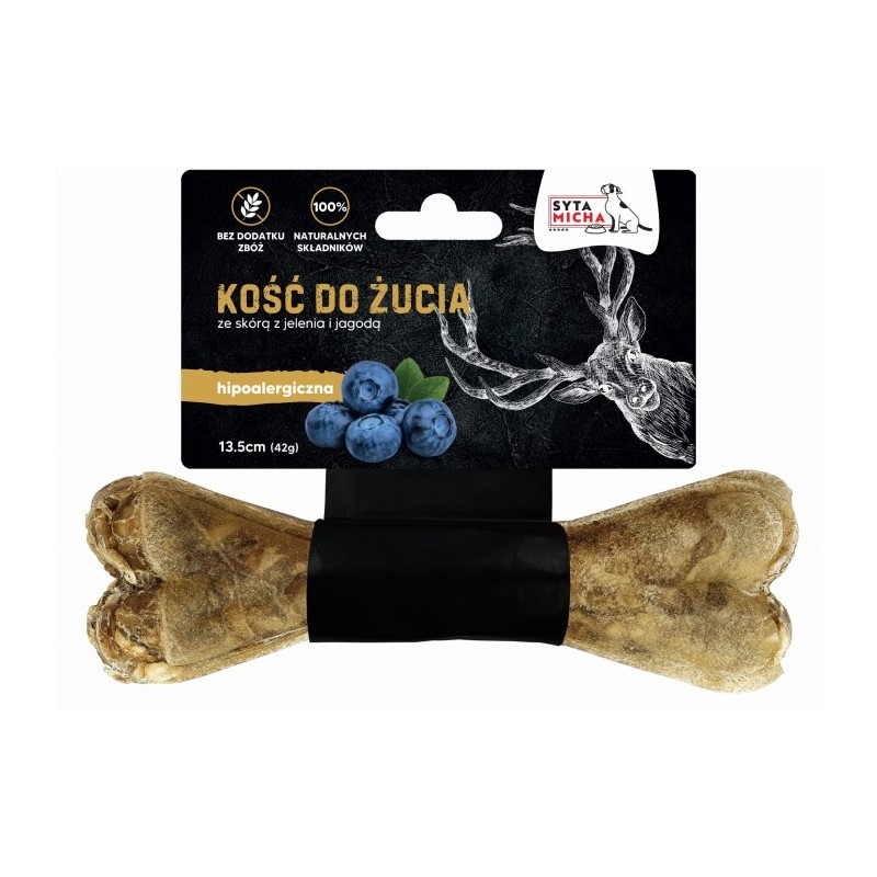 Te psie rarytasy powstały z nieprzetworzonych produktów, gdzie głównymi składnikami hipoalergicznej kości dla psa są: skóra jelenia oraz jagody.