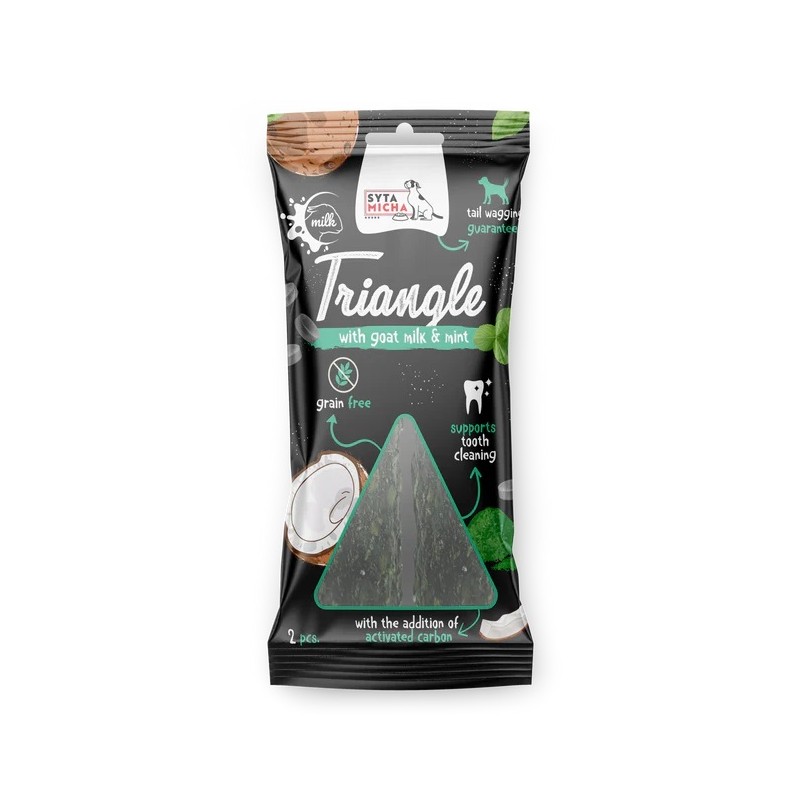 Trójkąt dentystyczny dla psa to polski gryzak, powstały jedynie produktów naturalnego pochodzenia. Jego prohigieniczny skład pozwala na utrzymanie w pełni zdrowia jamy ustnej oraz zębów pupila, a dodatkowo dostarcza do jego organizmu wartościowych składników odżywczych (aminokwasy, związki bioaktywne).