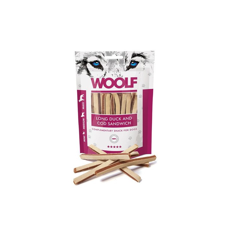 Woolf Snack Beef with Cod Sandwich to smakowity przysmak dla twojego ulubieńca! Wraz z nim otrzyma potrzebne do dobrego funkcjonowania białko. Przysmak nie zawiera chemicznych dodatków. Świetnie sprawdzi się jako przekąska urozmaicająca codzienną dietę twojego psiaka.