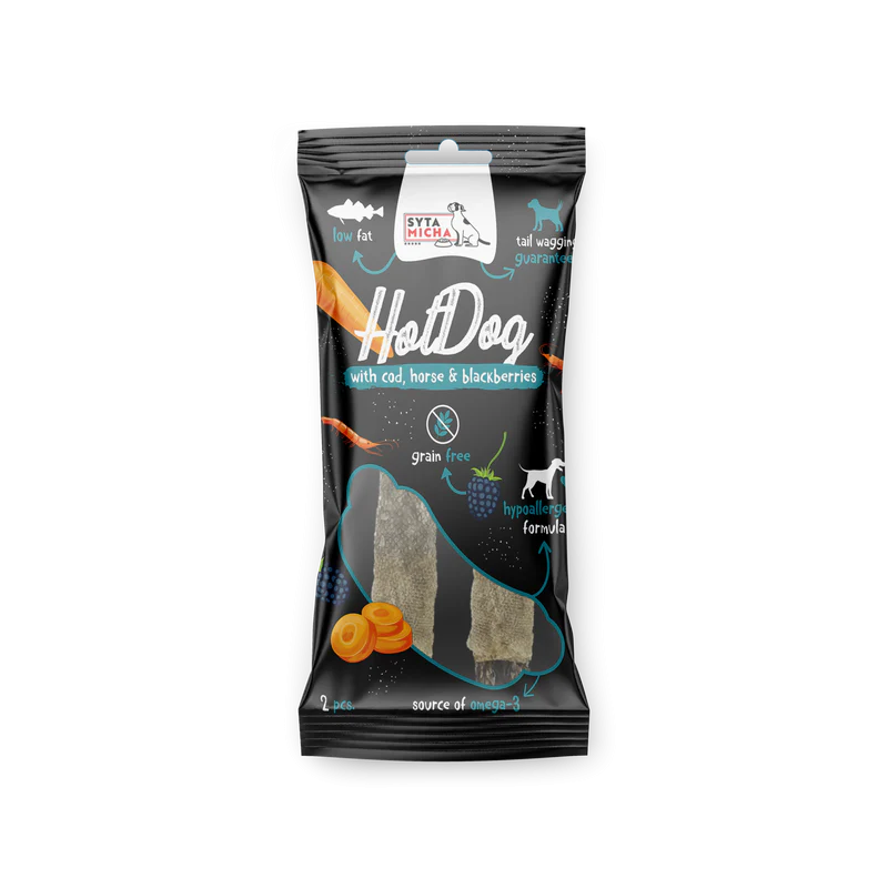 Jeśli na chociaż jedno pytanie odpowiedź brzmi TAK, to Hot Dog z koniną i jeżynami Syta Micha jest świetnym wyborem. Ta pyszna przekąska nie tylko angażuje psa do żucia, ale także dostarcza cennych składników odżywczych dla Twojego czworonożnego przyjaciela.