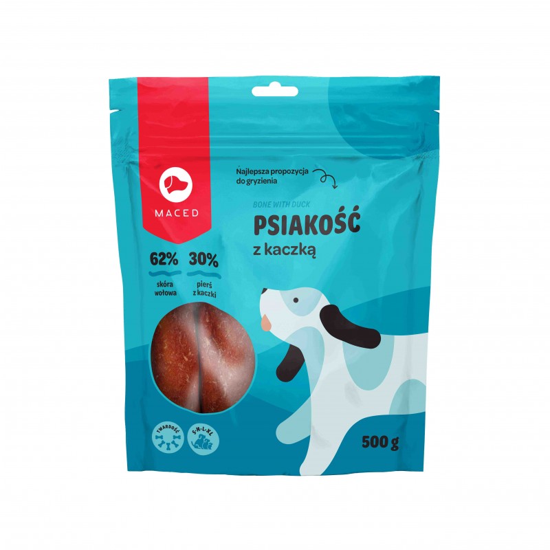 Psiakość pałka owinięta kaczką to gryzak ze skóry wołowej owinięty mięsem z kaczki. Wykonana z twardej skóry wołowej pałka to smakowita przekąska dodatkowo czyszcząca zęby i wzmacniająca dziąsła psa.