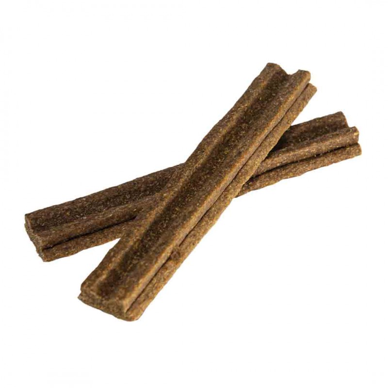 GRYZAK FUNKCJONALNY z szałwią i rumiankiem to monoproteinowy przysmak, który pomaga utrzymać zęby oraz dziąsła w czystości i zdrowiu. Gryzak pomaga chronić zęby przed narastaniem kamienia nazębnego. Dodatek szałwi i rumianku łagodzi stany zapalne jamy ustnej, wspiera naturalną odporność, a także pomaga niwelować nieprzyjemny zapach z jamy ustnej. Dzięki zawartości tylko jednego rodzaju mięsa, przysmak jest polecany psom z alergiami na białko inne niż królicze. Bez dodatku cukru.