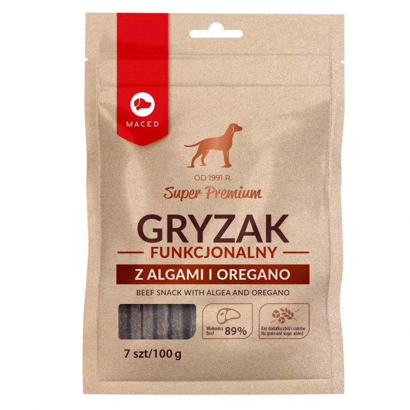 GRYZAK FUNKCJONALNY z algami i oregano to monoproteinowy i bezzbożowy przysmak, który pomaga utrzymać zęby oraz dziąsła w czystości i zdrowiu. Gryzak pomaga chronić zęby przed narastaniem kamienia nazębnego, a także zmniejsza ryzyko chorób przyzębia. Dodatek oregano i alg działa przeciwbakteryjnie i przeciwgrzybicznie, a także pomaga niwelować nieprzyjemny zapach z jamy ustnej. Dzięki zawartości tylko jednego rodzaju mięsa, przysmak jest polecany psom z alergiami na białko inne niż wołowe. Bez dodatku zbóż i cukru.