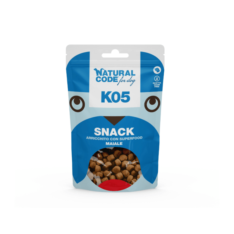 Natural Code Dog Snack Superfood K05 Wieprzowina to smakowita i pożywna przekąska stworzona z myślą o wyjątkowych doznaniach smakowych Twojego psa. Wzbogacona o naturalne, starannie dobrane składniki, zapewnia pełnowartościowe uzupełnienie codziennej diety – wspiera zdrowie i witalność.