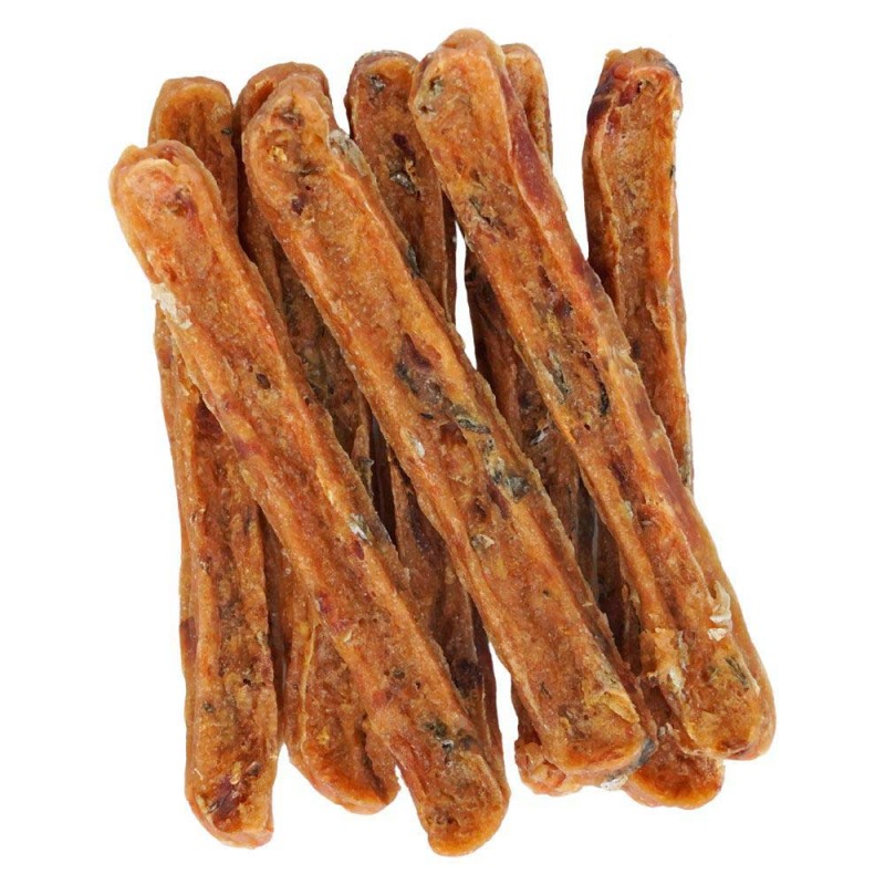 Fish4Dogs Love Salmon Sticks 85g to wysokiej jakości, naturalne przysmaki dla psów, wykonane w 100% z łososia. Dzięki swojej miękkiej konsystencji i intensywnemu aromatowi, są idealne jako nagroda podczas treningów lub smaczna przekąska między posiłkami. Bogate w kwasy Omega-3, wspierają zdrowie skóry, sierści oraz stawów Twojego pupila.