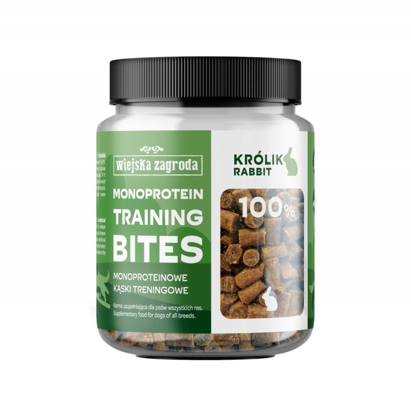 Wiejska Zagroda Pies Monoproteinowe Kąski Królik 150g to przysmaki treningowe monoproteinowe dla psa o zawartości mięsa i składników zwierzęcych wynoszącej 100% to produkt klasy premium, dedykowany opiekunom, którzy poszukują najwyższej jakości nagród podczas sesji szkoleniowych. Przysmaki te charakteryzują się pełnowartościowym składem, opartym wyłącznie na mięsie i składnikach pochodzenia zwierzęcego, co czyni je doskonałym wyborem nawet dla najbardziej wymagających czworonogów.