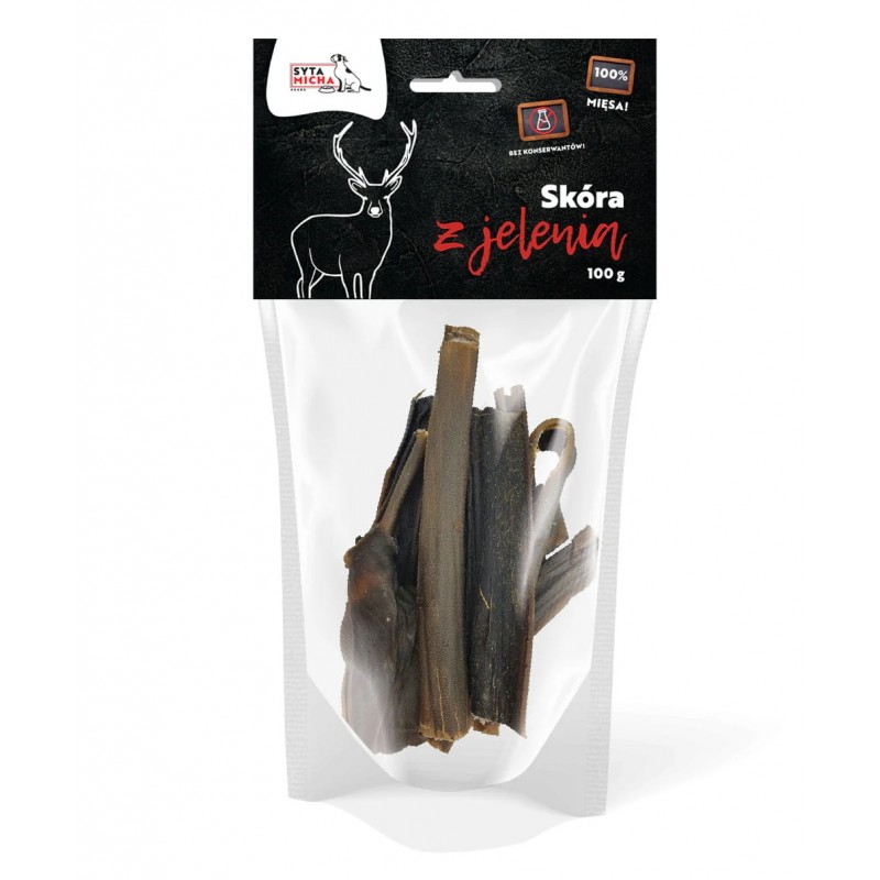 Skóra z jelenia Syta Micha to najwyższa smakowitość oraz mieszanka składników odżywczych zamkniętych w jednym opakowaniu.