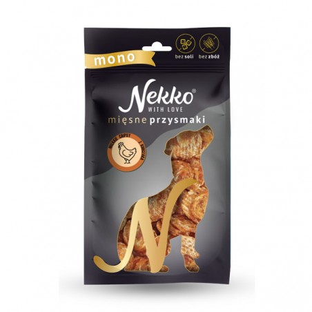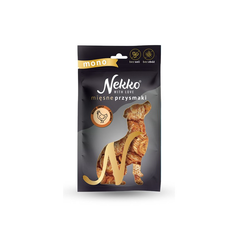 Pyszna przekąska w postaci miękkich chipsów z mięsa kurczaka dla psów.