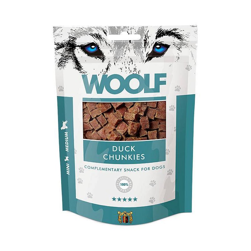 Brit Woolf Snack Duck Chunkies to smakowity przysmak dla twojego ulubieńca! Wraz z nim otrzyma potrzebne do dobrego funkcjonowania białko. Przysmak jest naturalny i lekkostrawny, nie zawiera chemicznych dodatków. Świetnie sprawdzi się jako przekąska urozmaicająca codzienną dietę twojego psiaka.