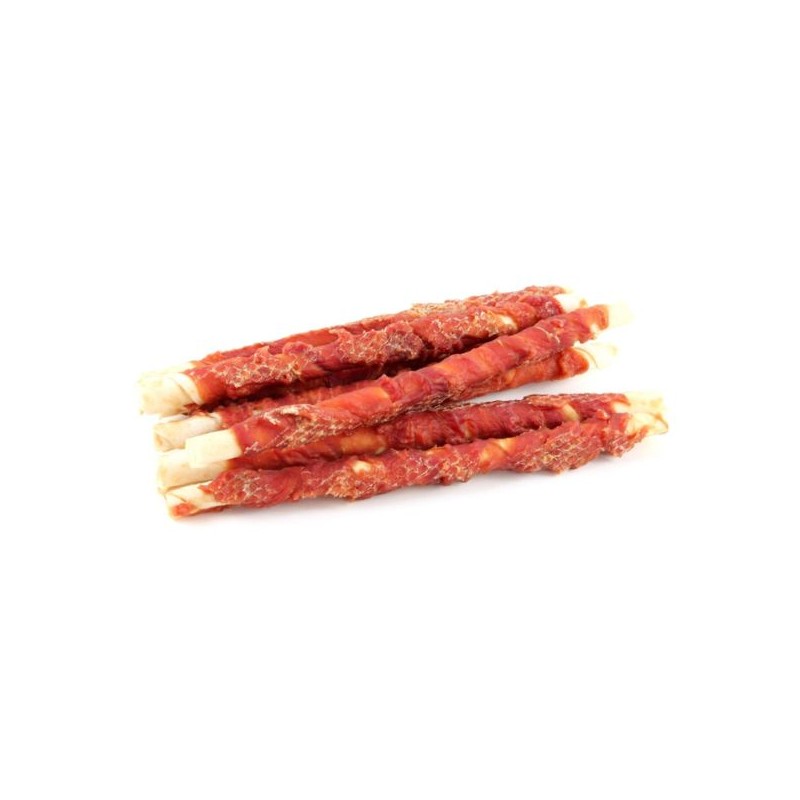 Przysmak dla psa w formie pałek owiniętymi mięsem z kaczki. Idealny do codziennych treningów jako nagroda.
