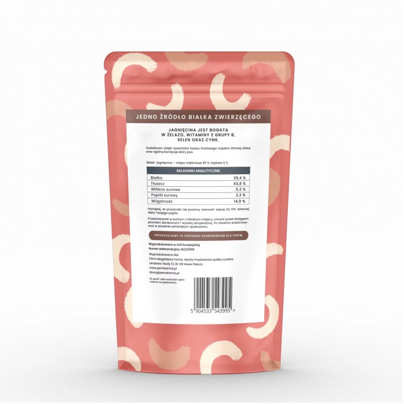 Skład: Jagnięcina – mięso mięśniowe 95 %, tapioka 5 %