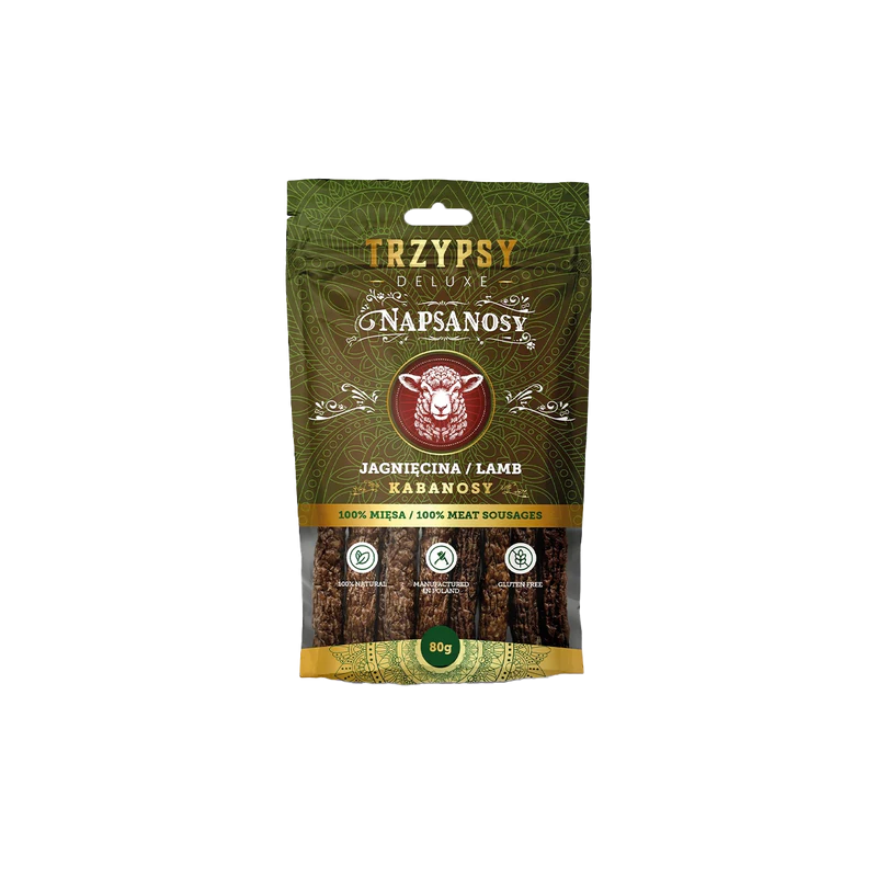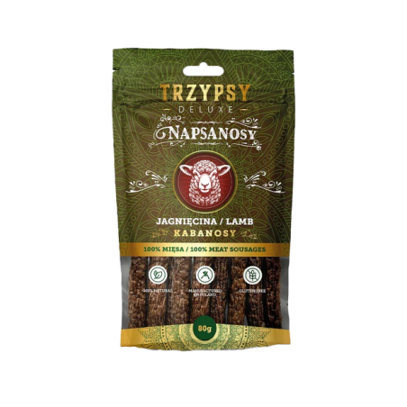 Trzypsy Napsanosy to pyszne kabanosy wykonane ze 100% mięsa, stanowiące zdrowy i naturalny przysmak dla psów. Dzięki starannie dobranym składnikom i delikatnemu suszeniu zachowują wyjątkowy smak oraz wartości odżywcze.