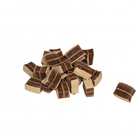 Smakowity przysmak dla psa, w formie małych kawałków z wołowiny i dorsza.