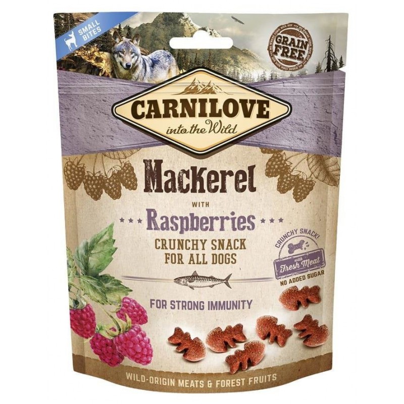 Pyszna przekąska z makrelą dla wszystkich psów z malinami, naturalnym źródłem antyoksydantów dla dużej odporności.
