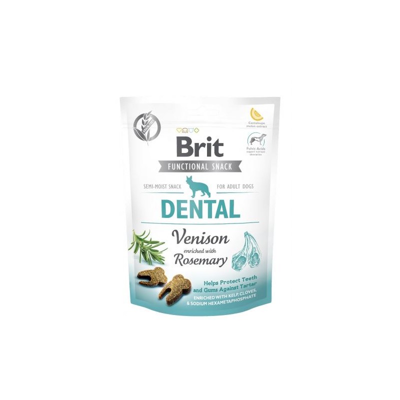 Brit Care Functional Snack Dental to pysznie i soczyste, bezzbożowe przysmaki pomagające w utrzymaniu zdrowych zębów psa, wzbogacone o funkcjonalne składniki takie jak pałeczki kwasu mlekowego, kwasy fulwowe czy ekstrakt z kantalupa. Stanowią idealną nagrodę dla Twojego psa podczas spacerów czy treningów. 10 smacznych rodzajów przysmaków bez zbóż i bez ziemniaków może być podawanych psom w każdym wieku, włączając szczenięta, bez żadnych wyrzutów sumienia.