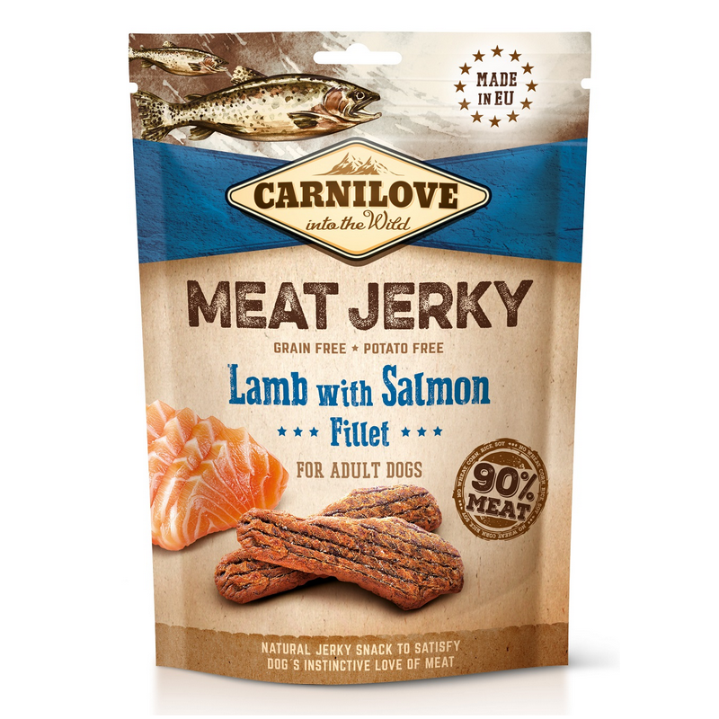 Carnilove Jerky to suszony przysmak dla dorosłych psów, który zawiera 90% mięsa i wyróżnia się doskonałym smakiem. Został wzbogacony naturalnymi przeciwutleniaczami.