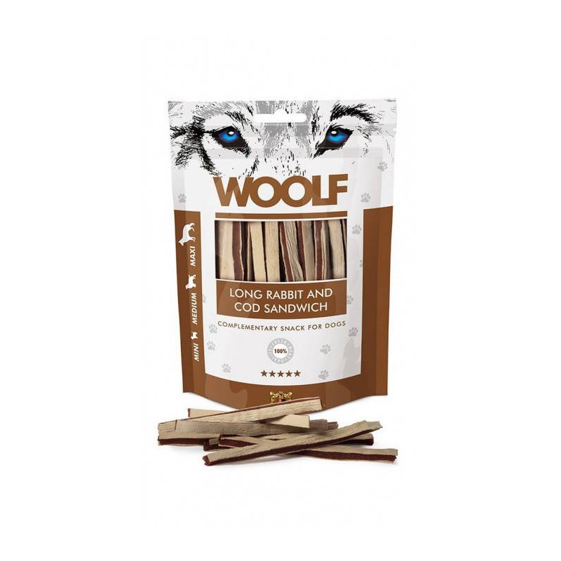 Woolf Snack Rabbit with Cod Sandwich to smakowity przysmak dla twojego ulubieńca! Wraz z nim otrzyma potrzebne do dobrego funkcjonowania białko. Przysmak jest naturalny i lekkostrawny, nie zawiera chemicznych dodatków. Świetnie sprawdzi się jako przekąska urozmaicająca codzienną dietę twojego psiaka.