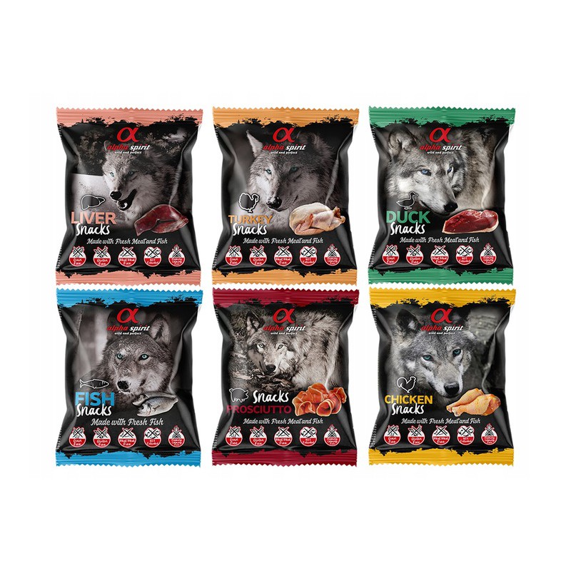 Przysmak w kostce to aż 85% świeżego mięsa i ryb. Zawierają tylko naturalne składniki, dostarczane przez lokalnych dostawców. Przygotowujemy je w niskiej temperaturze, dzięki czemu przysmaki zachowują właściwości odżywcze. Smakołyki Alpha Spirit to idealny produkt do treningu z psem.