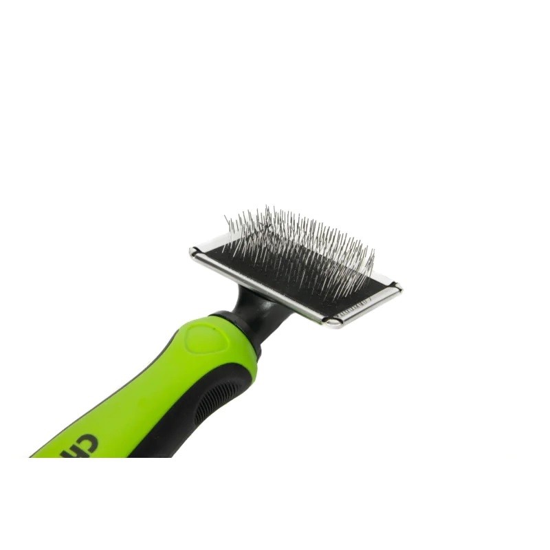 Delikatne szpilki wyczesują podszerstek/martwy włos, czyszcząc sierść z zanieczyszczeń i nadając jej połysk. Dzięki elastycznej głowicy idealnie dopasowuje się do kształtów zwierzęcia dając jednocześnie komfort oraz bezpieczeństwo użytkowania. Produkt pozwala zadbać o zdrowy i zadbany wygląd futerka Twojego pupila!