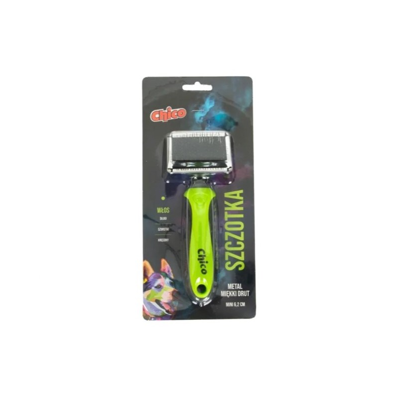 Szczotka nadaje się do pielęgnacji długiego, szorstkiego lub kręconego włosa. Przeznaczona jest dla małych ras psów oraz kotów.