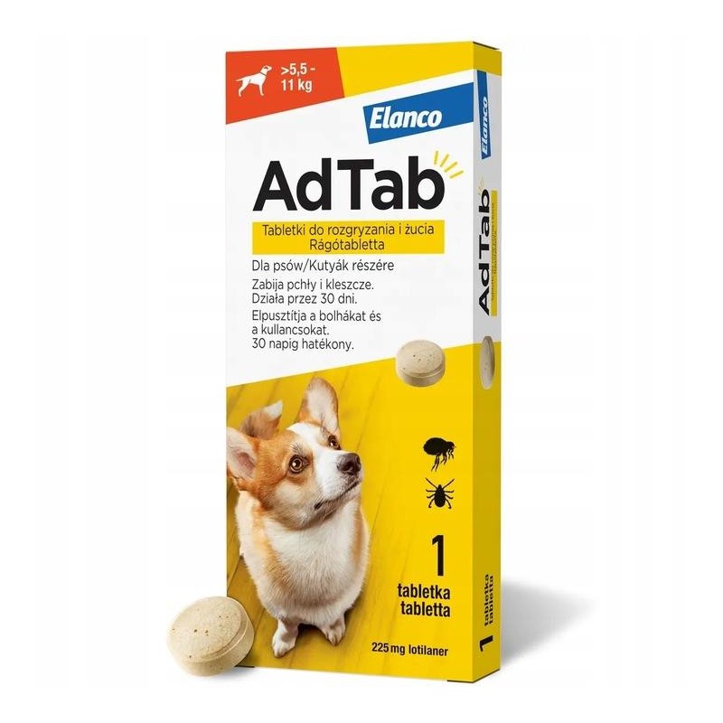 Zapewnij bezpieczeństwo swojemu pupilowi wraz z tabletką przeciw pchłom i kleszczom AdTab. Ta mała tabletka o smaku mięsa wykazuje skuteczne działanie już po upływie dwóch godzin od podania jej zwierzakowi. Jedna tabletka chroni zwierzaka przez okres 1 miesiąca, a jej stosowanie zalecane jest u szczeniąt i kociąt od 8 tygodnia życia. W szeroko zakrojonych badaniach wykazano w zalecanych dawkach tabletka AdTab jest dobrze tolerowana przez psie i kocie organizmy. Zawarta w niej substancja czynna powoduje nadmierną stymulację układu nerwowego pcheł i kleszczy, co w niewielkim odstępie czasu doprowadza do ich śmierci. Substancja czynna, jaką jest lotilaner występuje w czystej formie aktywnej, dzięki czemu znacznie mniej obciąża organizm, zmniejsza ryzyko wystąpienia działań niepożądanych i wykazuje lepszą skuteczność.